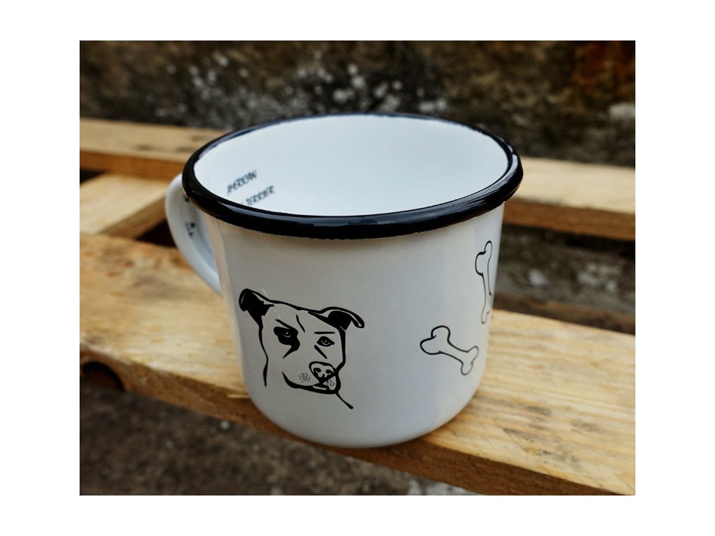 smaltovaný plecháček s ouškem, objem 350 ml,
