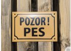 ručně smaltovaná výstražná cedulka Pozor pes design bez tlapky - menší rozměr 150x100mm, dodání do 2 týdnů